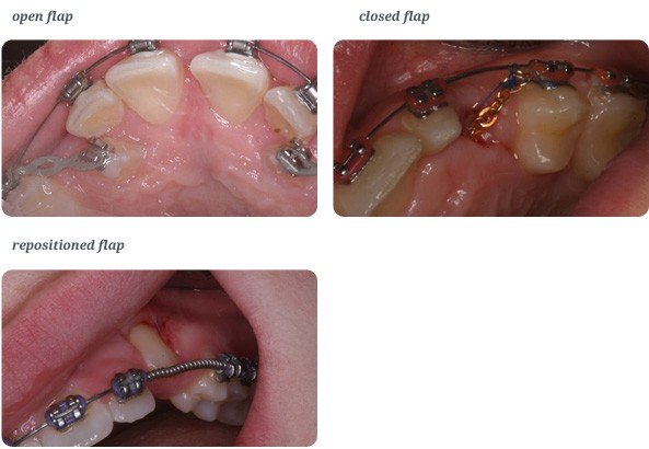 The second option is for your dentist to expose the tooth and then attach an orthodontic bracket to it. Either at the time of surgery or shortly after in order to help guide the tooth to the level of the adjacent teeth.